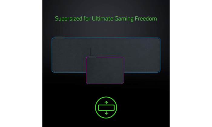 O tapete de rato para jogos macio mais vendido agora é Powered by Razer Chroma — pronto para iluminar todas as vitórias num deslumbrante espectro de cores.