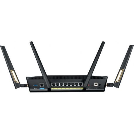 › Router Wi-Fi 4x4 de banda dupla que fornece largura de banda de 160 MHz e 1024-QAM › 4 antenas externas › Suporte WPS › Norma 802.11ax Wi-Fi