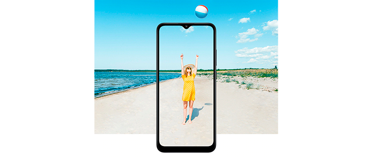 Samsung Galaxy A02s 3GB/32GB Dual Sim Preto Muito menos moldura, muito mais visualização Expanda sua visão para o ecrã Infinity-V de 6,5 polegadas do Galaxy A02s e veja como menos ecrã oferece mais visualização. Graças à tecnologia HD+, o seu conteúdo diário terá a melhor aparência.
