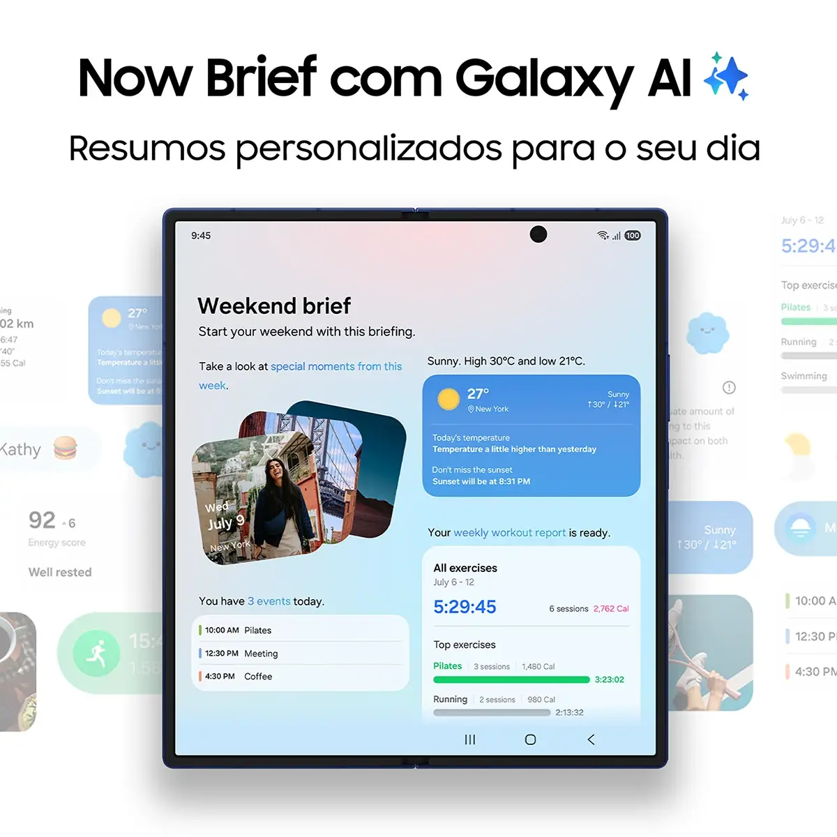 Corpo 26% mais fino (fechado) em comparação com o Z Fold 6; Visualização perfeita em exteriores com brilho até 2.600 nits e Vision Booster; Pro-Visual Engine, com Tecnologia de câmaras da série S25; Resistência à água IP48; Potente CPU Snapdragon 8 Elite for Galaxy; Ecrã interior de 8" Dynamic AMOLED 2X a 120 Hz; Desenha um círculo para pesquisar com Google.