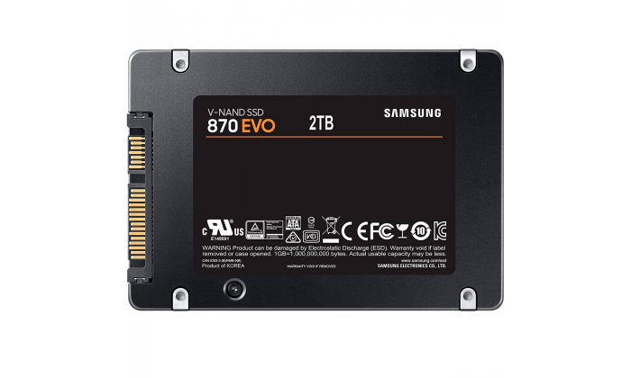 O 870 EVO herda o legado da tecnologia SSD pioneira da Samsung, apresentando desempenho atualizado, fiabilidade e compatibilidade para atender às necessidades de qualquer pessoa, desde criadores de conteúdo, profissionais de TI, até utilizadores comuns. EXCELÊNCIA EM PERFORMANCE O 870 EVO atinge o limite máximo da interface SATA de 560/530 MB/s. Os utilizadores comuns agora podem desfrutar de desempenho SSD de nível profissional. O Intelligent TurboWrite acelera as velocidades de gravação e mantém o alto desempenho de longo prazo com um buffer variável maior. MAIS COMPATÍVEL DO QUE NUNCA O 870 EVO passou nos testes de compatibilidade com os principais sistemas host e aplicativos, incluindo chipsets, motherboards, NAS e dispositivos de gravação de vídeo. Como a última entrada na série EVO mais vendida globalmente, a versatilidade comprovada do 870 EVO é compatível com sistemas e tarefas de qualquer utilizador. SOFTWARE DE GESTÃO O software Samsung Magician foi projetado para ajudá-lo a gerir o seu SSD com uma interface de utilizador simples e intuitiva. Especificações: Capacidade: 2 TB Formato: 2.5" Interface: SATA 6 Gb/s, compatível com a interface SATA 3 Gb/s e SATA 1.5 Gb/s NAND: Samsung V-NAND 3bit MLC Controlador: Samsung MKX Controller Memória Cache: Samsung 2 GB Low Power DDR4 SDRAM Velocidade sequencial leitura: Até 560 MB/s Velocidade sequencial escrita: Até 530 MB/s Leitura aleatória (4 KB, QD32): Até 98000 IOPS Escrita aleatória (4 KB, QD32): Até 88000 IOPS Endurance: 1200 TBW Criptografia: Criptografia AES 256-bit (Class 0), TCG/Opal, IEEE1667 (Encrypted drive)