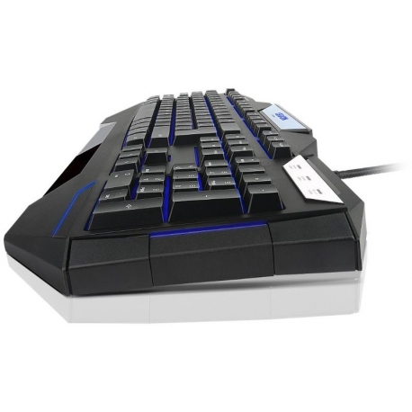Teclado para jogos de tamanho total de 3 zonas 12 chaves anti-ghosting (escolha entre 24 teclas disponíveis) Retroiluminação LED de 3 cores (vermelho, azul, roxo) Chaves resistentes a derramamentos Cabo USB trançado