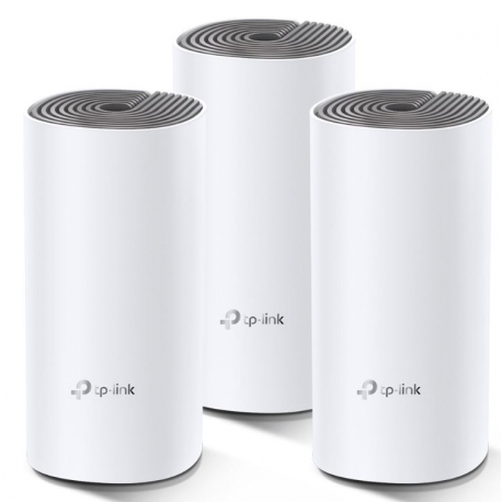TP-LINK Deco E4. Banda wi-fi: Dual-band (2,4 GHz / 5 GHz), Top padrão Wi-Fi: Wi-Fi 5 (802.11ac), Velocidade de transferência de dados WLAN (máx.): 867 Mbit/s. Tipo de interface de ethernet LAN: Ethernet rápida, Normas de Comunicações: IEEE 802.11a,IEEE 802.11ac,IEEE 802.11b,IEEE 802.11g,IEEE 802.11n. Codificação / segurança: WPA-PSK,WPA2-PSK. Tipo de produto: Router de topo de mesa, Cor da caixa: Cinzento, Branco. Tipo de antena: Interno