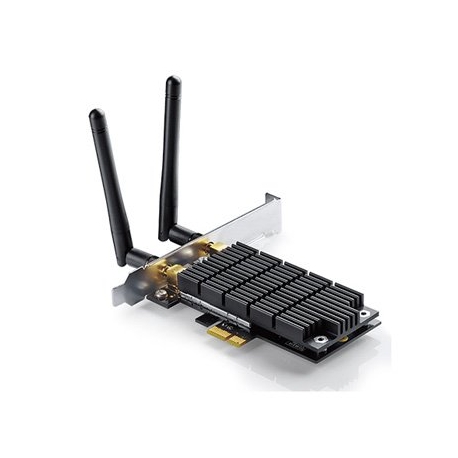 TP-LINK AC1300. Tecnologia da conectividade: Com fios, Interface do host: PCI, Conectividade de série: WLAN. Velocidade máxima de transferência: 867 Mbit/s. Normas de Comunicações: IEEE 802.11a, IEEE 802.11ac, IEEE 802.11b, IEEE 802.11g, IEEE 802.11n, Modulação: 16-QAM, 64-QAM, 256-QAM, CCK, DBPSK, DQPSK, OFDM, Banda de frequência: 2.4 - 5. Padrões Wi-Fi: 802.11a, 802.11ac, 802.11b, 802.11g, 802.11n, Velocidade de transferência de dados WLAN: 867 Mbit/s. Cor da caixa: Preto