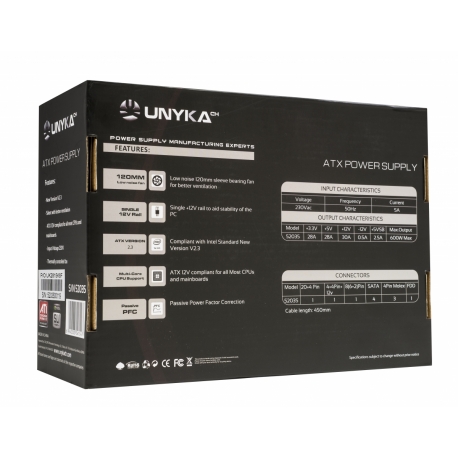 UNYKAch 52035, 20+4 pin ATX, +12V,+3.3V,+5V,+5Vsb,-12V, ATX, PC, Black, Red, Top (230 mm x165mm x 95 mm)