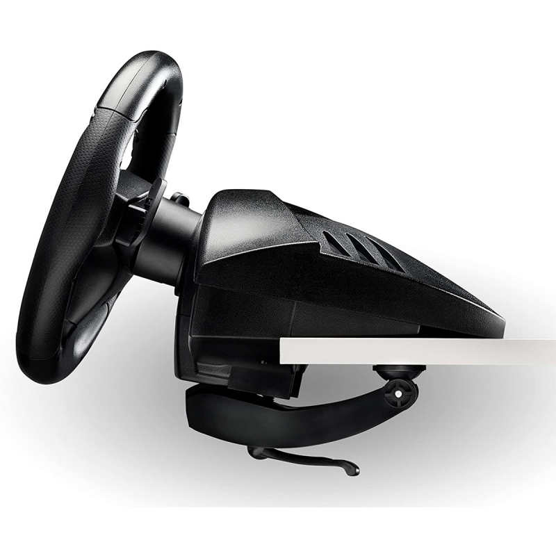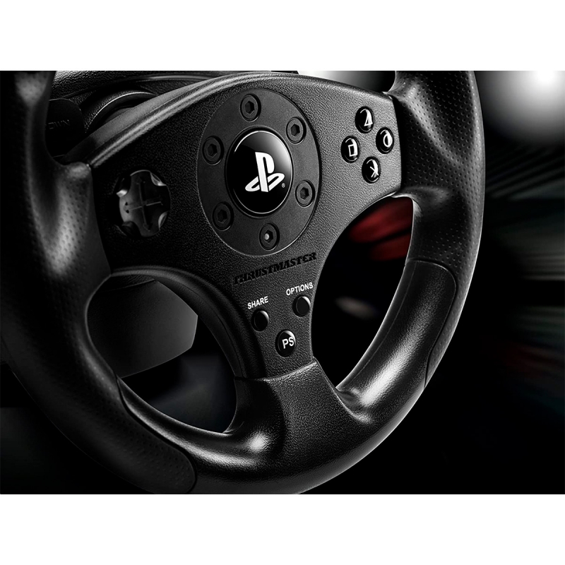 VOLANTE OFICIAL PARA PLAYSTATION 4 A licença PlayStation®4 garante compatibilidade total em jogos e menus com os botões oficiais “PS” , “Share” e “Options”. Firmware oficial incorporado (permite o reconhecimento automático do volante pela PS4). Compatível com PS4™ / PS3™. CONJUNTO DE PEDAIS GRANDES OTIMIZADOS 2 pedais com descanso amplo para os pés. Ângulo de inclinação ajustável para cada pedal. Pedal do travão com resistência progressiva. RESISTÊNCIA LINEAR Centragem automática. Sistema "bungee cord" Thrustmaster® exclusivo, que oferece resistência realista. UTILIZAÇÃO NO PC No PC, o interruptor deslizante USB básico do volante de corrida T80 deve estar sempre na posição PS4! 2 PÁS DE MUDANÇA DE VELOCIDADES DIGITAIS SEQUENCIAIS NO VOLANTE Punho do volante dotado de revestimento com textura de borracha. EQUIPAMENTO COMPLETO 2 alavancas sequenciais + 11 botões de ações + D-Pad. Sensibilidade ajustável do volante para uma condução precisa. SISTEMA DE FIXAÇÃO CENTRAL Sistema de fixação central com grampos largos para máxima estabilidade em todos os tipos de secretárias e mesas.