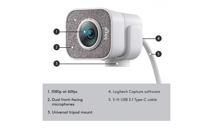 TRANSMISSÃO AO VIVO Eleve o nível do seu conteúdo ou compartilhe as suas paixões usando a Logitech StreamCam. Com impecável qualidade de imagem, microfones frontais duplos, opções de montagem versáteis e conectividade USB-C, a StreamCam é a câmara perfeita para fazer a transmissão para as suas plataformas de streaming favoritas — tudo o que você precisa de fazer é ser você mesmo! UMA COMBINAÇÃO PODEROSA A Logitech StreamCam é ainda mais poderosa quando usada com o Logitech Capture. O Capture desbloqueia recursos da StreamCam que automatizam a exposição, enquadramento, estabilização e muito mais, para que você possa concentrar-se em criar o seu melhor conteúdo. TRANSMISSÃO REALISTA A 60 FPS Cansado de parecer um pouco apagado? Transmita e grave vídeos expressivos e realistas, com movimentos suaves e detalhes nítidos em alta definição máxima de 1080p a 60 frames por segundo. FOCO AUTOMÁTICO E EXPOSIÇÃO INTELIGENTES Pare de perder o foco nas suas transmissões e vídeos. O rastreamento facial ativado por IA oferece foco e exposição precisos, não importa onde você esteja posicionado. A exposição automática é ajustada com precisão para que você tenha a melhor aparência em várias condições de iluminação. VÍDEO VERTICAL FULL HD Basta virar a sua StreamCam para mudar instantaneamente para o modo retrato. Desfrute de alta definição máxima no formato 9:16, perfeito para as histórias do Instagram e do Facebook. OPÇÕES DE MONTAGEM VERSÁTEIS Consiga o ângulo perfeito para qualquer transmissão ou vídeo com opções de montagem flexíveis. O suporte para monitor pode girar e inclinar-se ou pode ser fixado num tripé. A estabilização eletrónica de imagem integrada reduz a trepidação da câmara devido a choques ou movimentos acidentais. CONEXÃO COM USB-C A StreamCam usa o USB Tipo-C, o padrão para conexões rápidas e fiáveis, para garantir velocidades eficientes de transferência de vídeo. Compatível com Windows 10 e macOS 10.14 e acima. SUPORTE OBS, XSPLIT E STREAMLABS. A Logitech StreamCam é otimizada para uso com o Open Broadcaster Software (OBS), XSplit e Streamlabs para que você possa fazer transmissões sem esforço no Twitch, YouTube e outras plataformas. Especificações: Resolução máxima do vídeo: 1080p/60 fps em MJPEG Resoluções suportadas: 1920x1080, 1280x720, 960x540, 848x480, 640x360, 320x240 Taxa de FPS suportados: MJPEG: 60 fps, 30 fps, 24 fps, 20 fps, 15 fps, 10 fps, 7,5 fps, 5 fps Lente: Lente de vidro Full HD de qualidade, f/2.0 - comprimento focal de 3,7 mm , Campo de visão: 78° (diagonal) Foco: Foco automático (10 cm até o infinito) / foco automático com base em face com Logitech Capture Áudio: Microfone omnidirecional duplo com filtro de redução de ruído / Canal estéreo ou mono duplo Luz indicadora de atividade: LED Branco Comprimento do cabo: Cabo USB C3.1 de 1,5 m Compatibilidade: Windows e Mac Conteúdo da Embalagem: Câmara com cabo USB 3.1 Tipo-C de 1ª geração de 1,5 m Suporte para monitor Fixação para tripé Documentação do utilizador